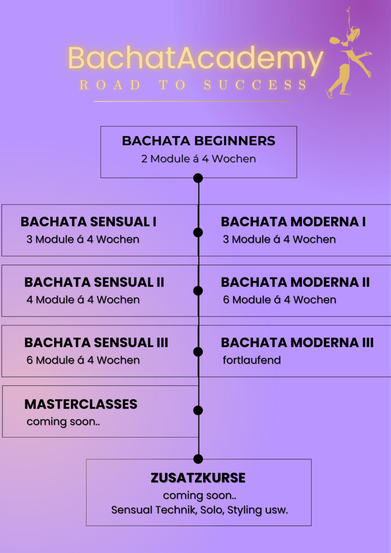 In den offenen Kursen bauen die Stunden nicht aufeinander auf. Das heißt, du kannst jederzeit einsteigen und auch spontan einzelne Stunden buchen. Wenn der Kurs z.B. schon drei Wochen läuft, kannst du trotzdem in Woche vier dazukommen und hast nichts verpasst. Jede Woche gibt es im jeweiligen Paartanz neue Inhalte.